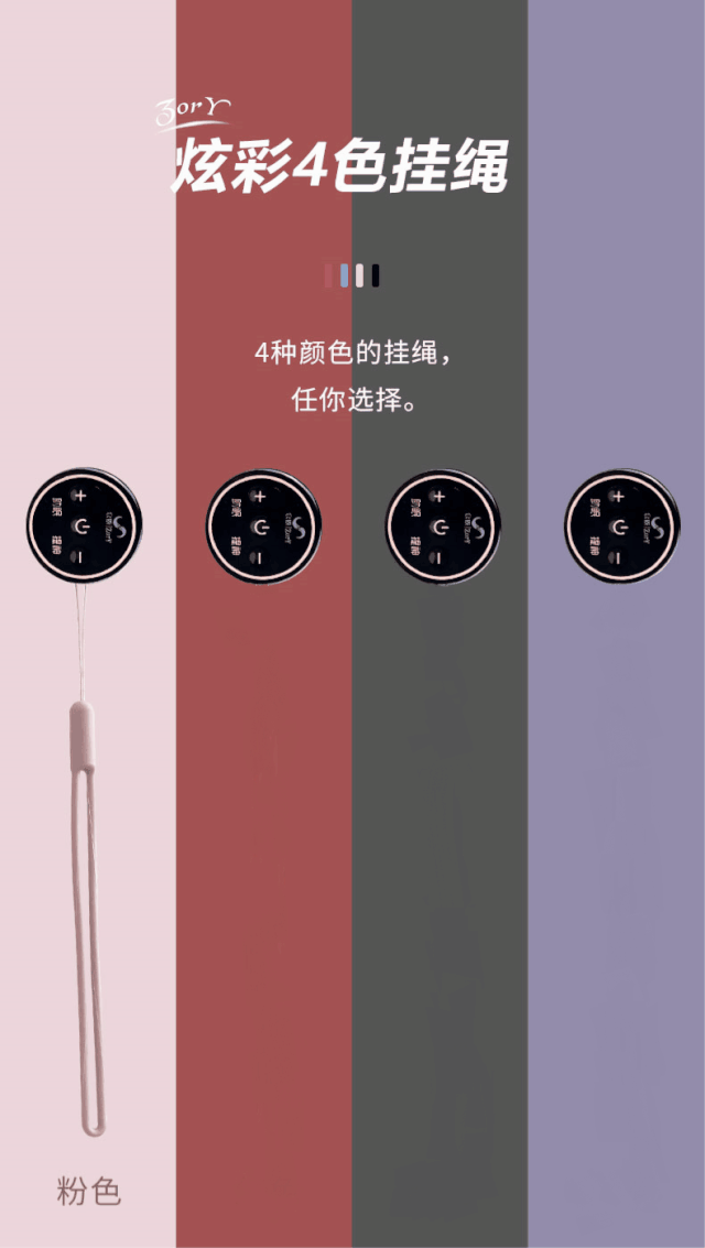 如此轻盈的身躯,我们还设计了挂绳,四种颜色随您选择,同时方便您套在手腕上以免不慎掉落。
